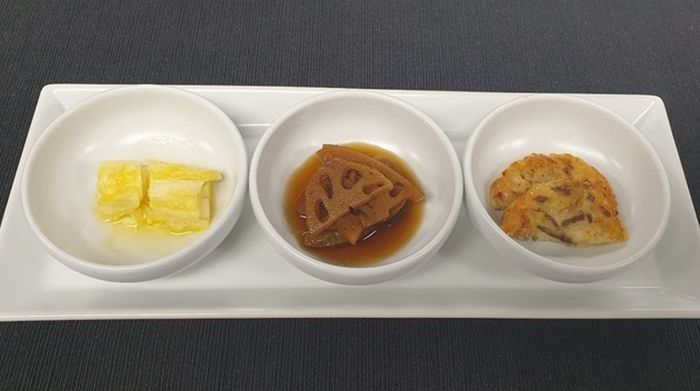 他にも、晩餐メニューで韓国各地の代表的な特産物を体験できるように郷土珍味5品の冷菜、江原(カンウォン)襄陽(ヤンヤン)の黒松茸のキノコ粥と沈菜(チムチェ)など、様々な食材を使った食べ物が並んだ。